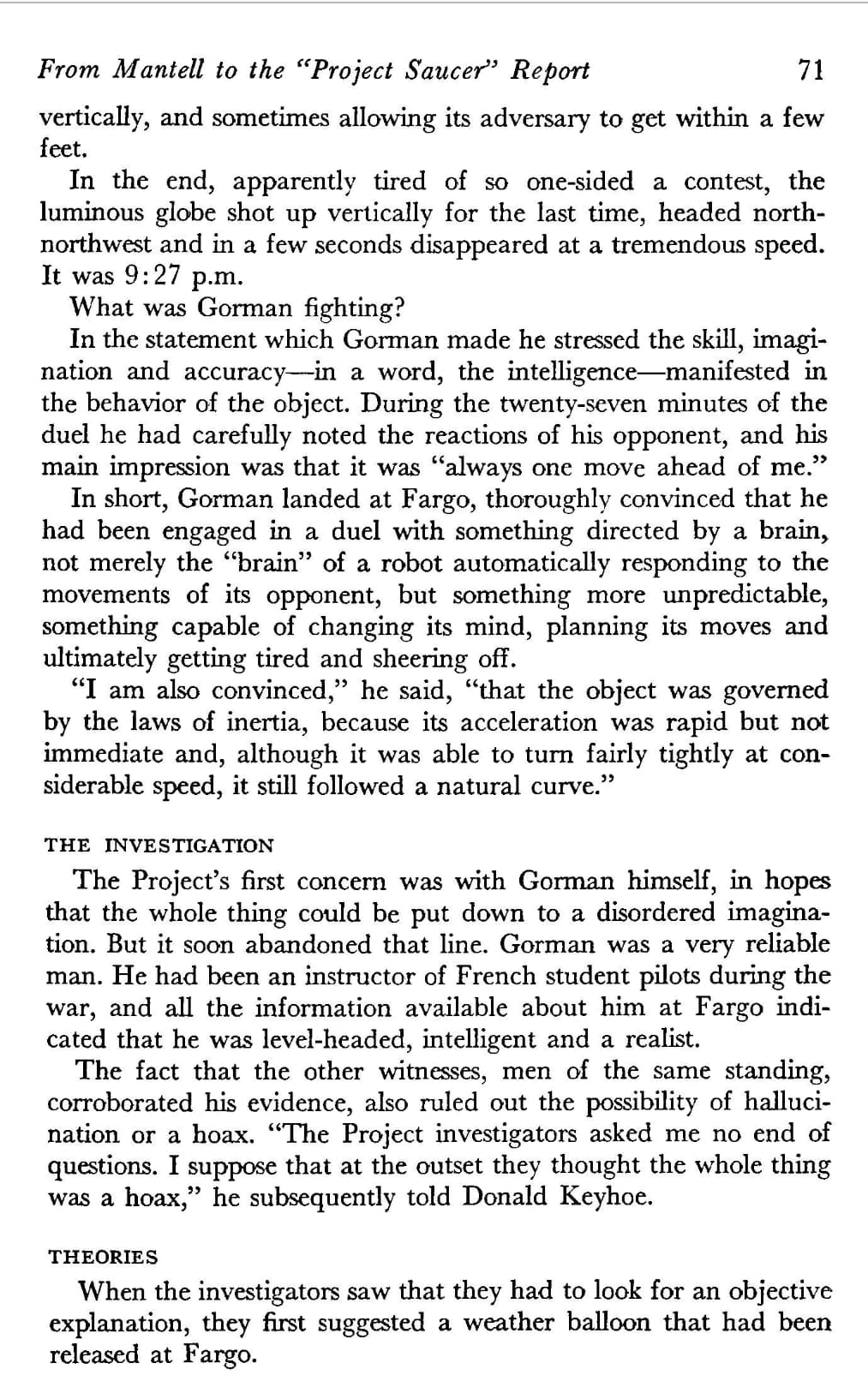 NICAP, “Gorman (Fargo) Case”;